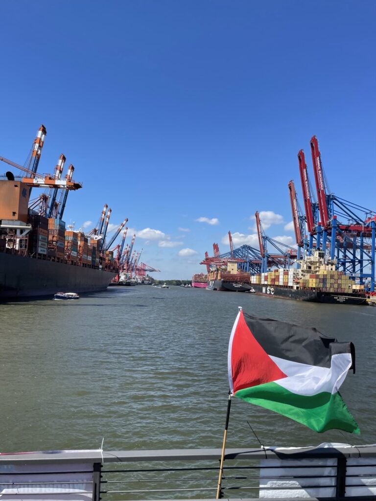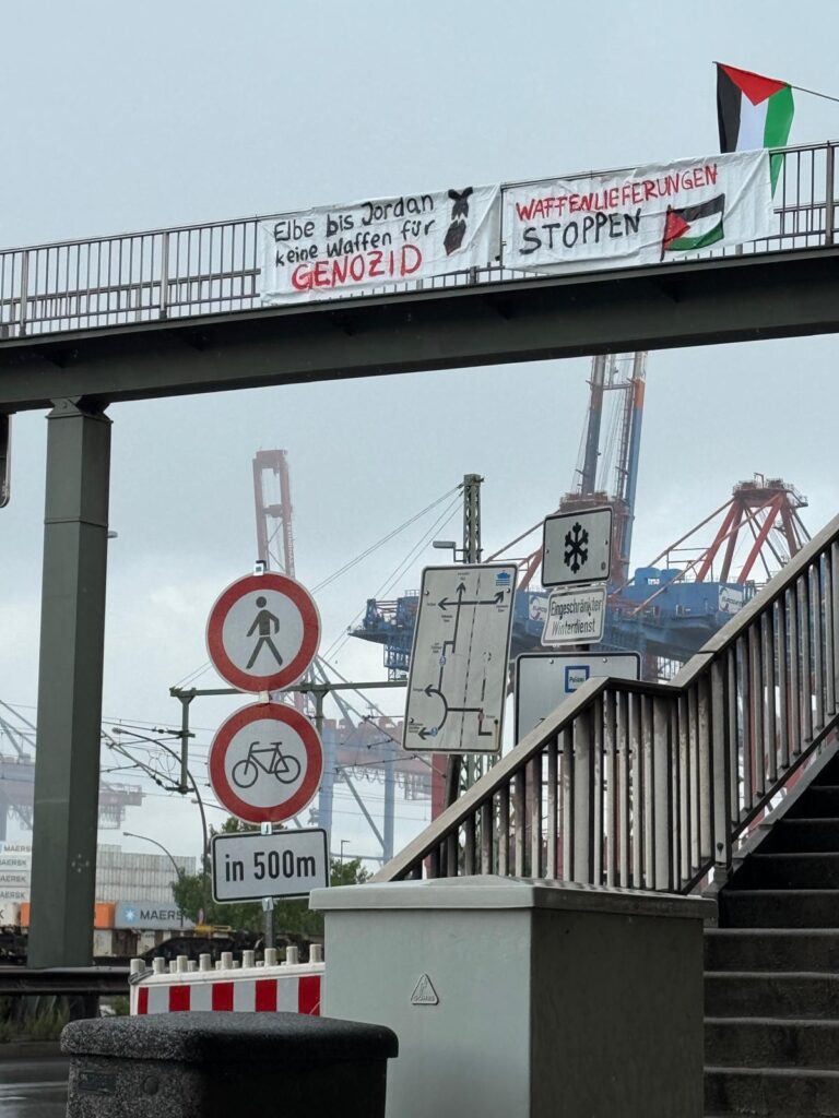 Akteure im Hafen wie die HHLA (Hamburger Hafen- und Logistik AG) oder ‘Metrans’ (HHLA Tochter), auch an ihren Händen klebt das Blut von wehrlosen Menschen in Palästina. Alle müssen sich der Beihilfe zum Völkermord stellen und ihre Verbindungen dazu abbrechen!